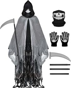 • Material: Long black robe, horned skull mask, faux bone gloves