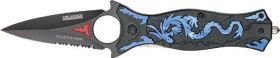 The Tac Force Knife offers a 3.5″ stainless steel half-serrated blade. It is very sharp and looks awesome. And the knife with a blue dragon aluminum handle can keep your grip comfortably. Plus, it can use as a pocket clip or glass breaker. When it is closed, it’s 4.5 inches. And it’s easy to open and spring out.