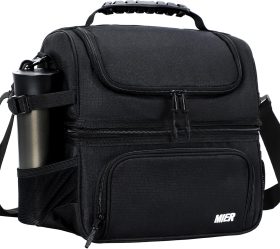 Pros: Rugged, water-resistant, dual compartments keep hot and cold items separate.